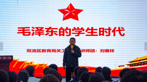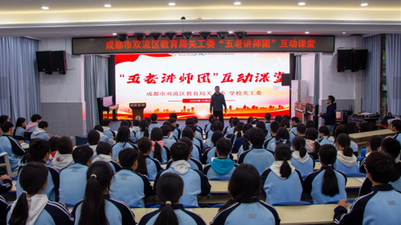 为引导青少年传承红色基因,2025年10月29日,成都市双流区教育局关工委“五老”讲师团走进四川省双流建设职业技术学校,开展“回望伟人足迹,汲取奋进力量”主题宣讲活动,近百名师生齐聚现场聆听毛泽东同志的生平故事。